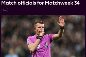 英超第34轮裁判: