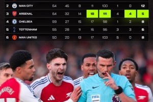 此外,尽管奥利弗执法阿森纳的比赛场次仅次于利物浦,但他判给阿森纳的点球数量(5个)却是英超BIG6中最少的。