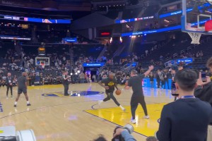 下一篇: 同步率100%啊😲詹姆斯赛前热身,和助教同步运球~